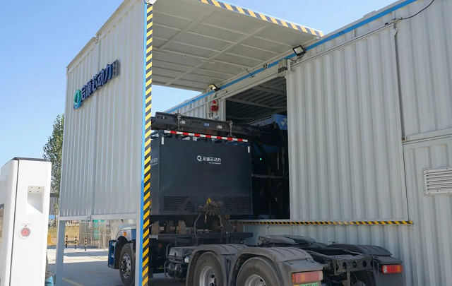 该示范项目是国家电投集团承担的交通强国建设试点任务的重要组成部分,由启源芯动力牵头实施。项目基于冀北电网辖区内63 座新能源重卡换电站,通过启源芯动力自主研发的"车 - 站 - 网"协同控制平台,开展全国最大规模的百兆瓦级换电站聚合与电网互动示范。